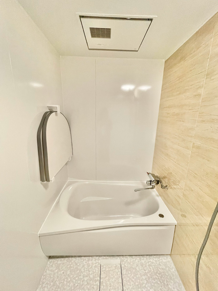 浴室と洗面所の間の壁を造り変えて、浴室を拡張しました。