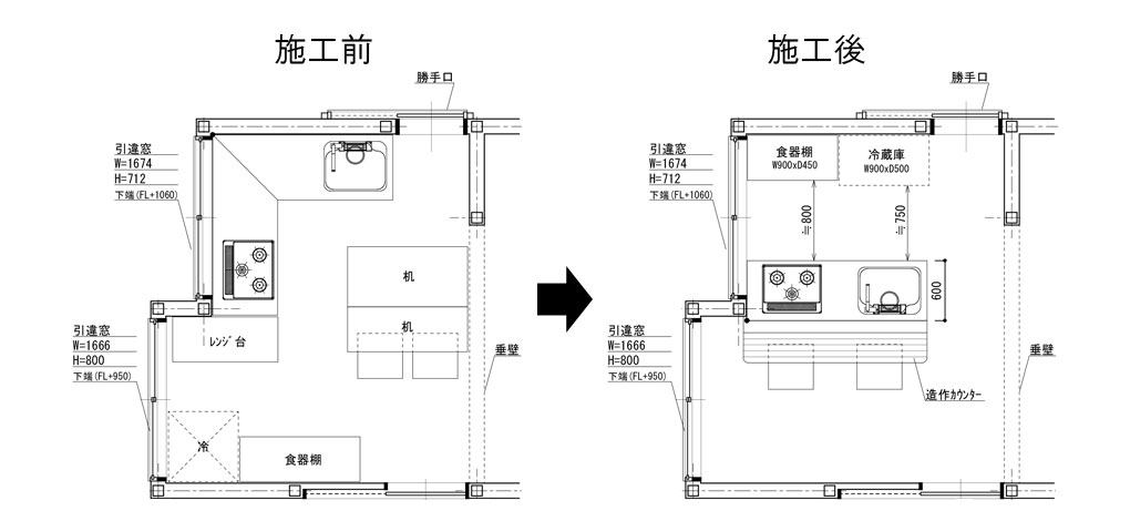 お部屋に明るさとあたたかみをプラスし家事動線を改善するキッチン